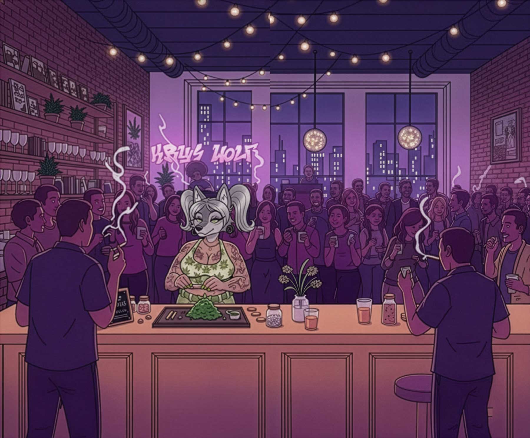 Wolf is best known for her Krys Wolf Rolls — hand-crafted, custom artisan joints that turn every session into a celebration. Her signature rolls have lit up some of the biggest cannabis events in NYC and even made their way across the ocean to stages like Spannabis in Spain.